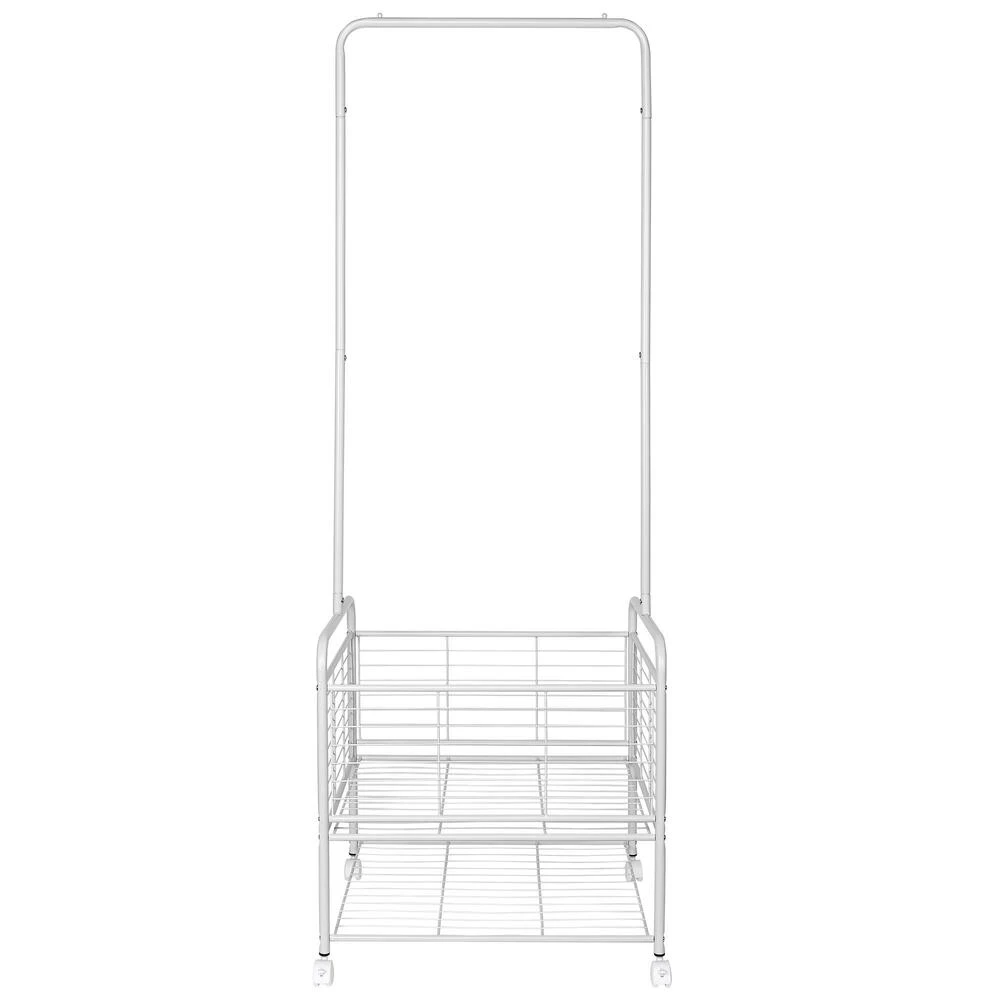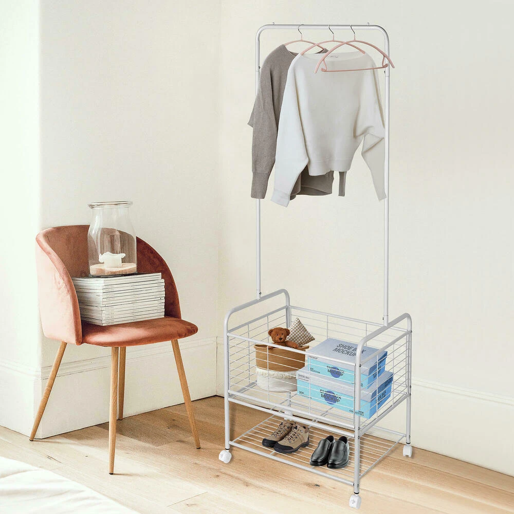 2 in 1 garment rack with hanging zone and storage basket.