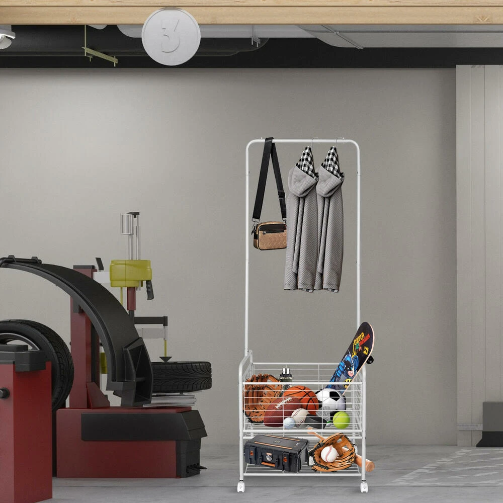 2 in 1 Garment Clothes Rack with Storage basket and Bottom Rack – SortWise®