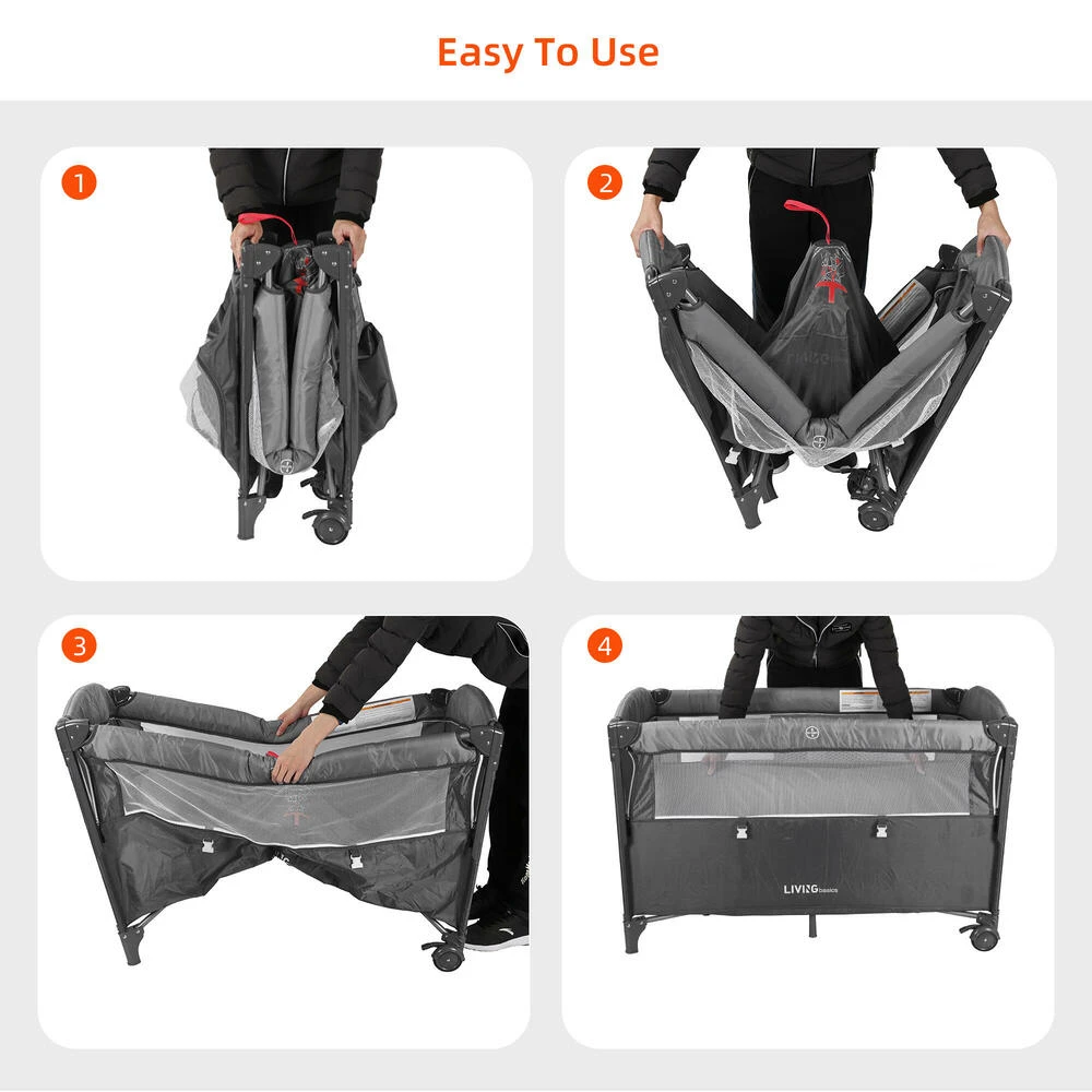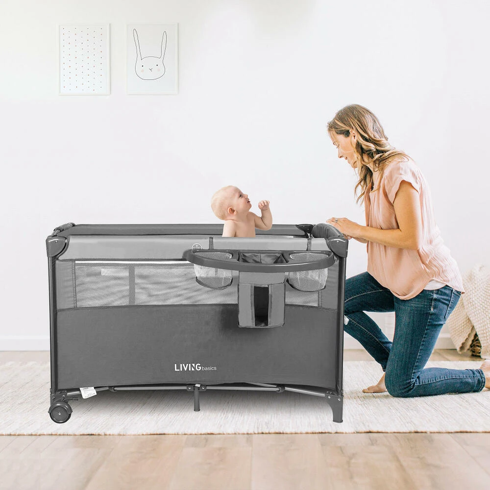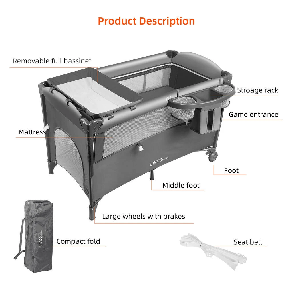 Baby crib comes with two layers, the upper layer as baby bassinet with mattress which make your baby in comfortable status. It could use as bedside crib. The lower layer as playard offers a place for playing. Please remove the upper layer if your baby is able to crawl and stand. Keep eyes on your baby to make sure they are in safe condition.