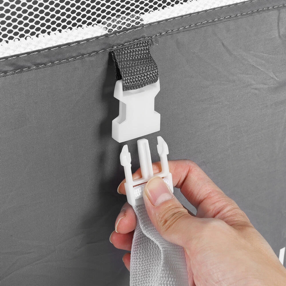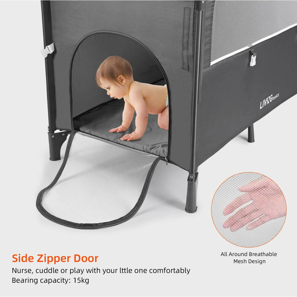 Baby playard with side door design, baby could play with you like hide and seek through the door. The smooth zipper design makes it convenient to open and close the side door. Please stay with your baby while they are playing in the playard, don’t let them stay alone.