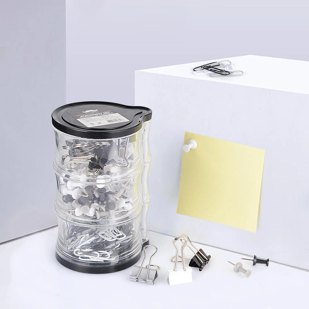 The stationery set includes 90 pcs push pins, 14 pcs 3/4” binder clips and 120 pcs 1.1” paper clips. With one set, meet different needs.