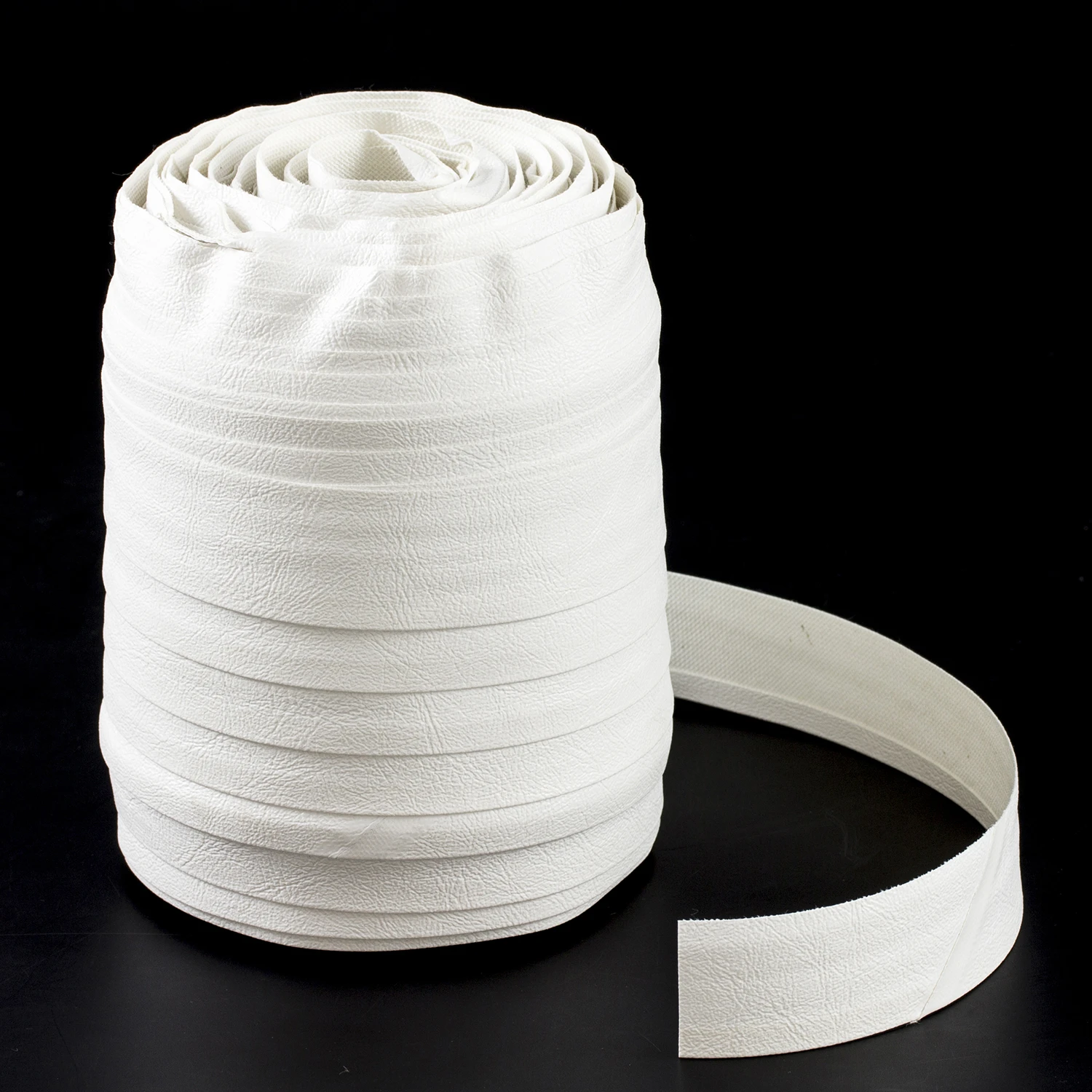 The 300 Series is a highly durable, seamed, bias binding. It’s made from embossed vinyl on stable, quality 14-to-15-ounce polyester/cotton backing. The 1ET binding is bias cut for flexibility. 300 Series marine binding stands up to dirt and UV rays for outstanding outdoor performance. Use the single-fold binding tape in White as finishing trim for boat covers, boat tops, boat enclosures, storage covers, and more.