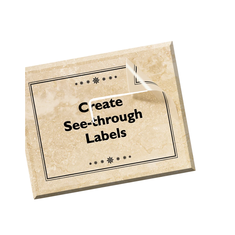 Labels virtually disappear when applied to white or coloured paper or envelopes. Achieve a professional printed-on look and add clear labels to envelopes for special occasions, gift boxes, personalized tags, glass jars for unique gifts, organizing boxes and more.