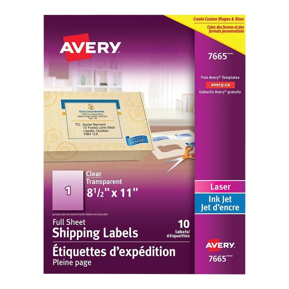 Avery® Clear Shipping Labels, Glossy Clear, Pack of 10