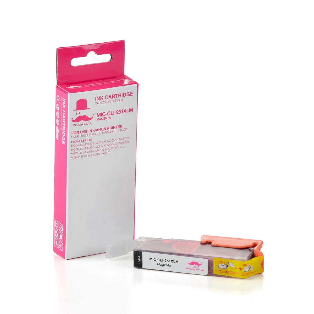 Our new compatible Canon CLI-251XL Magenta Ink Cartridge offers you excellent printing quality as good as the OEM Canon CLI-251XL Magenta Ink Cartridge. Moreover, it will print at least the same amount of pages as its OEM counterpart. Our company, 123Ink.ca, ensures that our compatible products meets all of your satisfactions. We ship all across Canada from our Western warehouse located in Vancouver and our Eastern warehouse located in Montreal, which guarantees the fastest shipment possible.