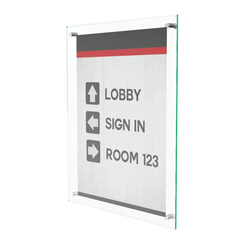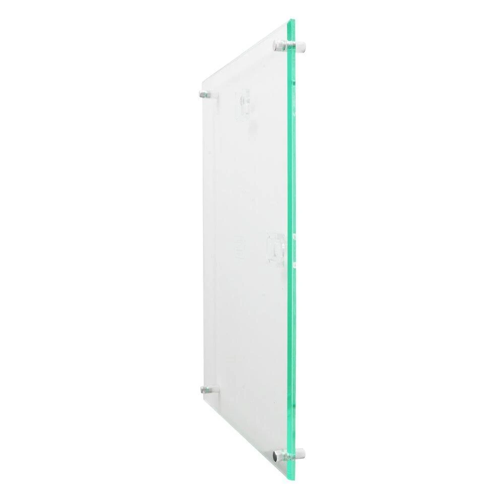10-1/16″W x 12-9/16″H x 7/8″D Premium sign holder with a green tinted edge that looks like real glass Sign holder can be displayed vertically or horizontally Securely floats signage between two plastic panels Metal knobs unscrew to easily change literature and orientation Accommodates up to 8-1/2″ x 11″ inserts or photos Personalize and print signs from any office using the free, online sign creator: (signcreator.deflecto.com)