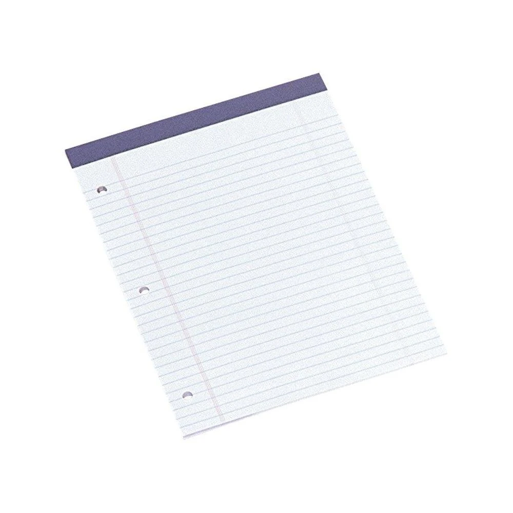Each pad has a perforation at the top to allow easy removal of pages, leaving a clean edge 3-hole punched White, wide-ruled sheets 8-1/2″ x 11-3/4″ in size with headband 50 sheets per pad