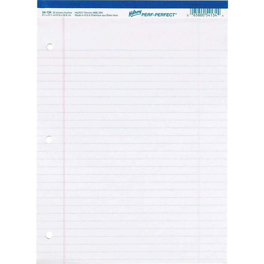 Hilroy® Perforated Pad, Ruled, 8-1/2″ X 11″, 3 Holes With Margin