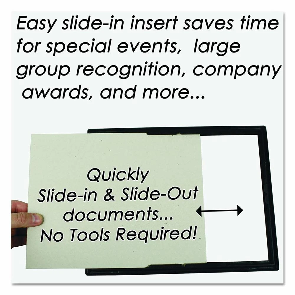 Fit for 8-1/2 x 11″ documents Super easy to load in and take out Plastic Frame with stylized Gold Accent Trim and Glass face Display in either portrait or landscape orientation Perfect for large group or volunteer recognition, graduations, photo displays, technical training, company awards and more.