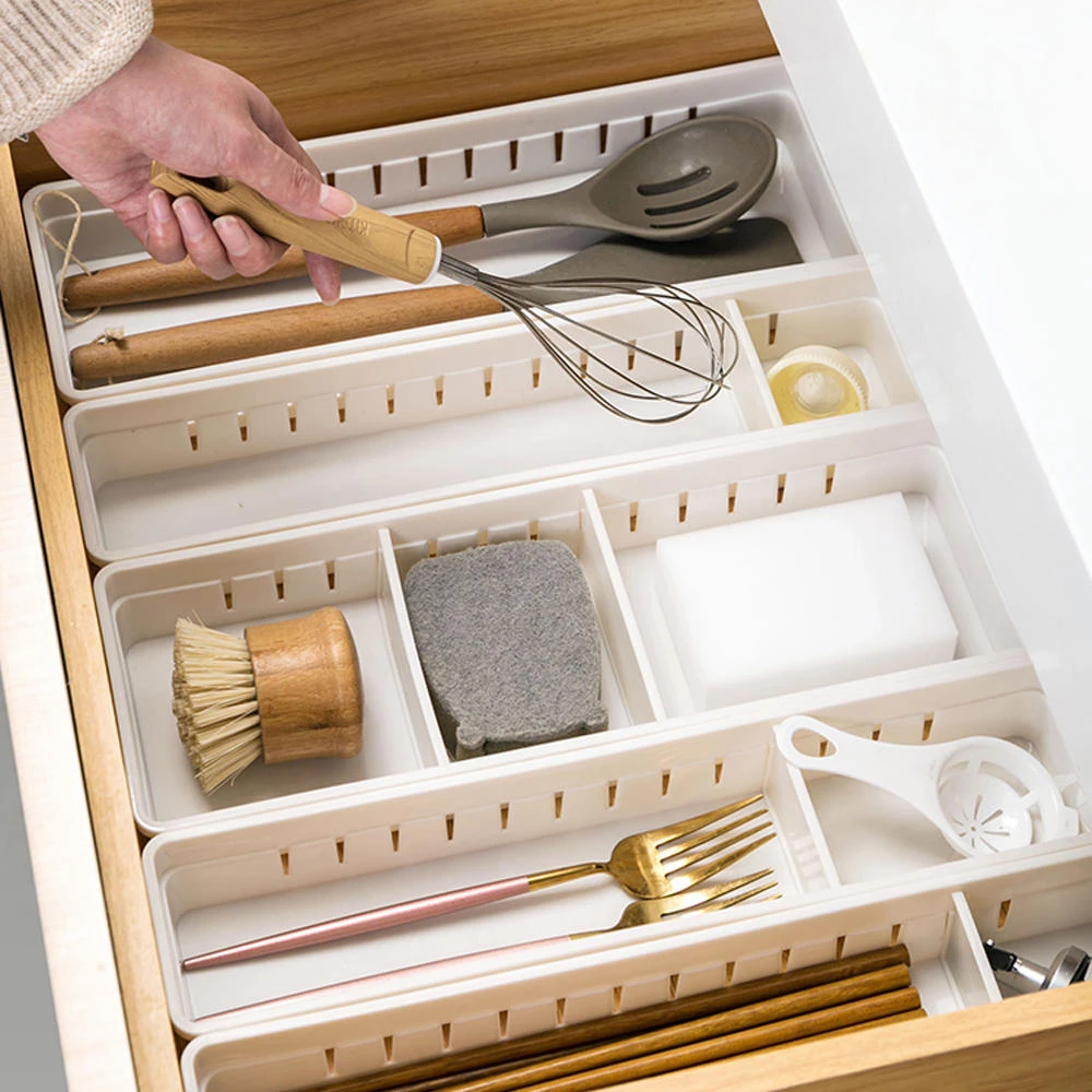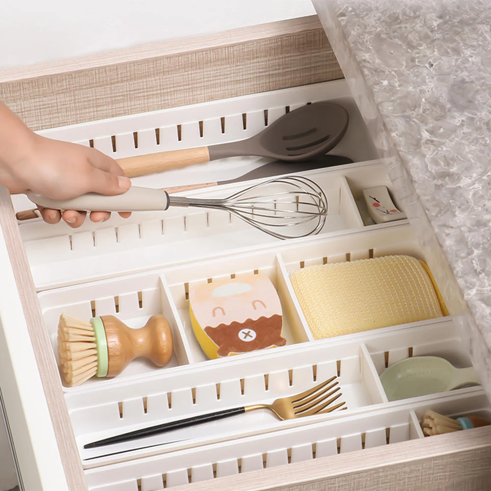 The flexible drawer divider can be used to store towels, underwear, ties, cosmetics and underwear, socks in the closet, condiments and tableware in the kitchen drawer, and toys in the children’s room.
