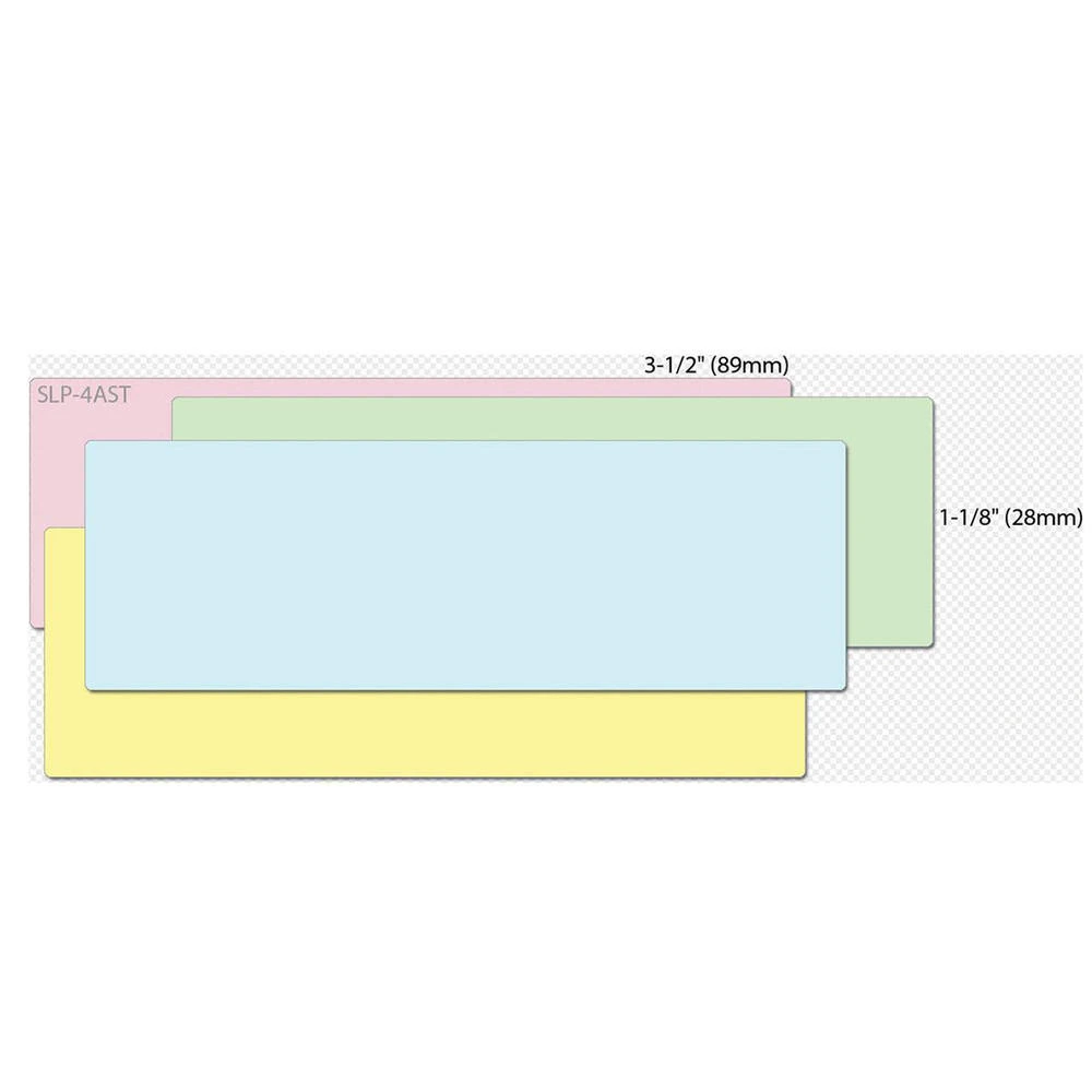 Direct Thermal Printing Assorted Colors (Blue, Green, Yellow, Pink) 1-1/8″ x 3-1/2″ ( 28 mm x 89 mm ) 1 pack each of yellow, blue, green, pink; 4 Rolls/Pack, 520 Labels in total (130 each roll) Compatible with your SmartLabel Printer 450, 440, 430, 420, 200, 100, 220 and 120