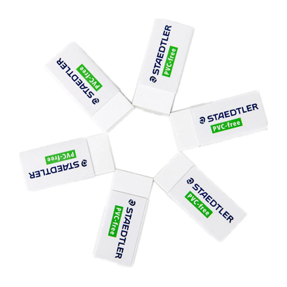 Our Staedtler erasers for blacklead and coloured pencilsdo not contain PVC or latex. They are specially designed for erasing without marks or smudges for practically residue-free erasing and precise and clean results in the office, at school or at home. The carton sleeve provides comfortable handling, the cellophane wrapping protects your eraser from getting soiled.