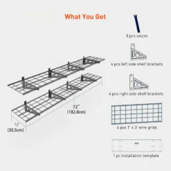 Wall Shelf Garage Storage Rack 1 X 6 FT, 2 Packs,12*72in, Supports Up 600 Lbs,Black – LIVINGbasics®