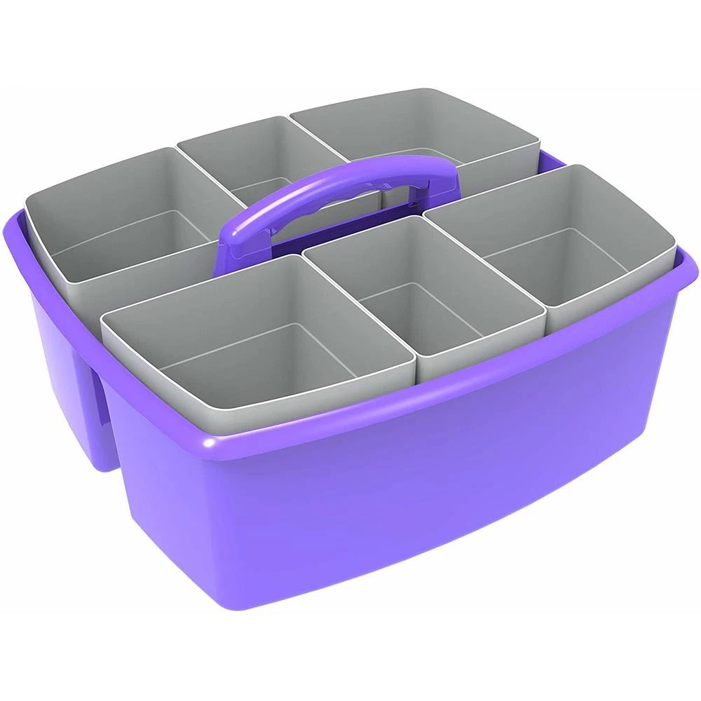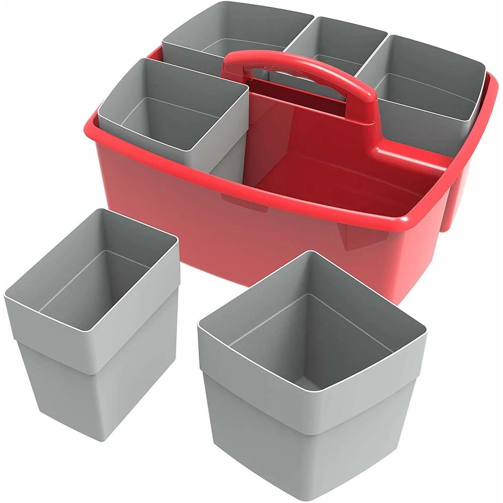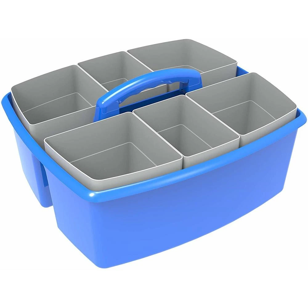 Storex Caddies are great for your movable storage needs. Classroom supplies, cleaning supplies, art & craft materials, utensils, and more are neatly stored and easily delivered where they are needed. Comfortable carrying handles ensure a secure grip for bringing supplies through the classroom or office. Choose Large Caddies with Removable Cups like these or Large or Small Caddies, depending on your storage needs.